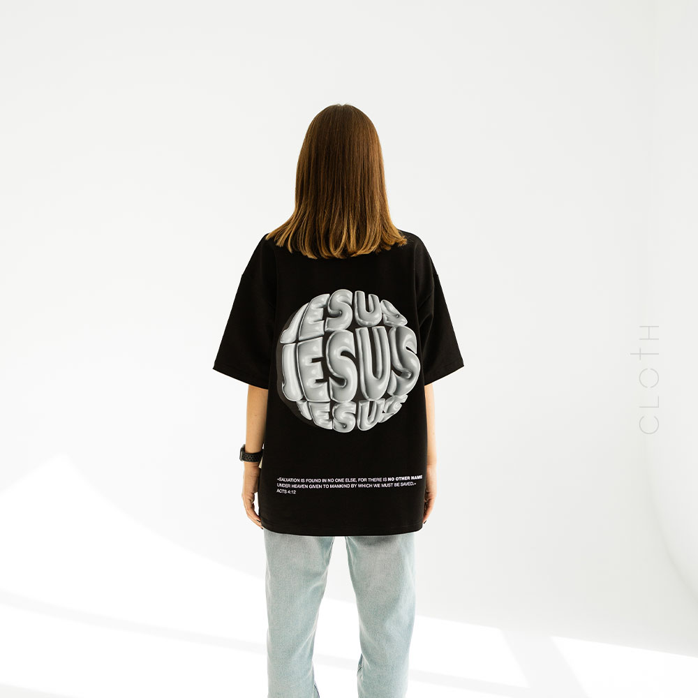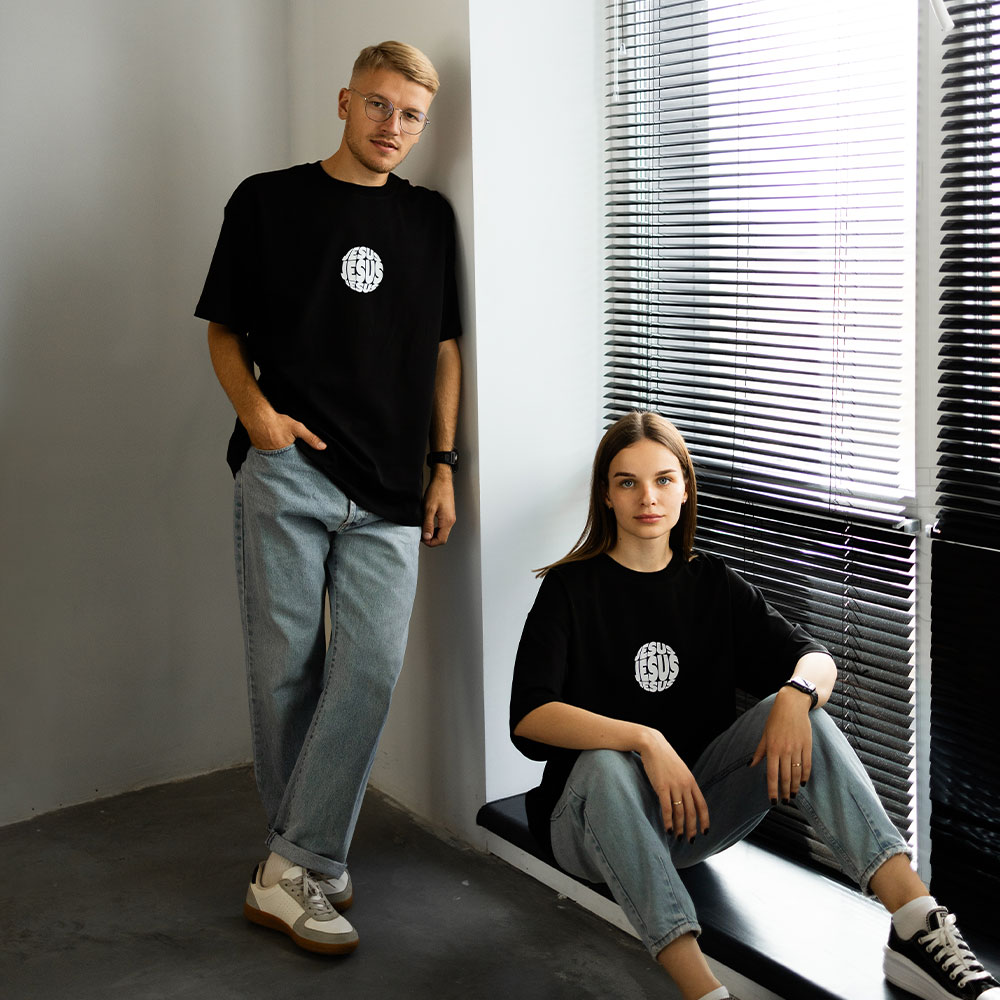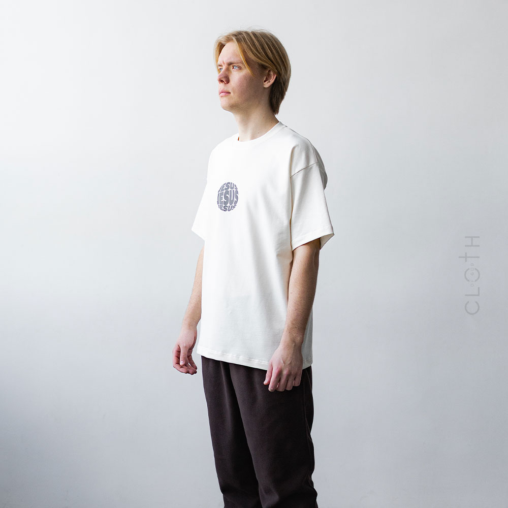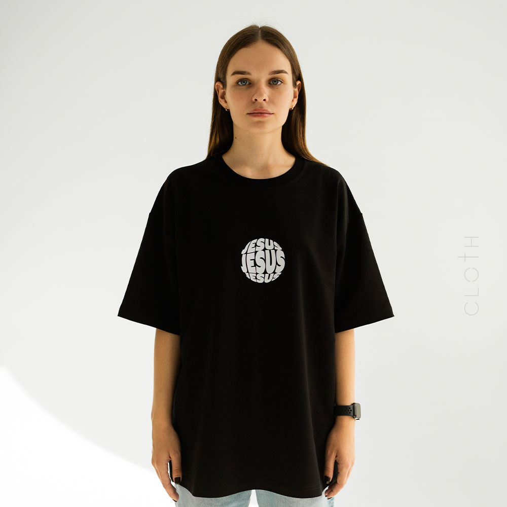 - Принт: стильний напис “Jesus”, який додає особливого змісту