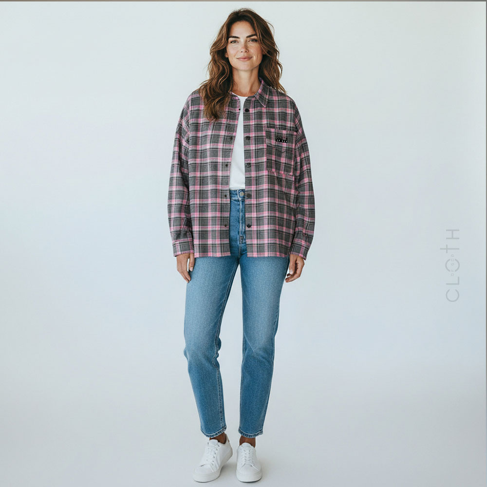 Сіро-рожева сорочка в велику клітинку unisex — Cloth of God. Трендова oversize-сорочка в велику сіро-рожеву клітинку — комфорт + стиль у 2025–2026 сезоні.