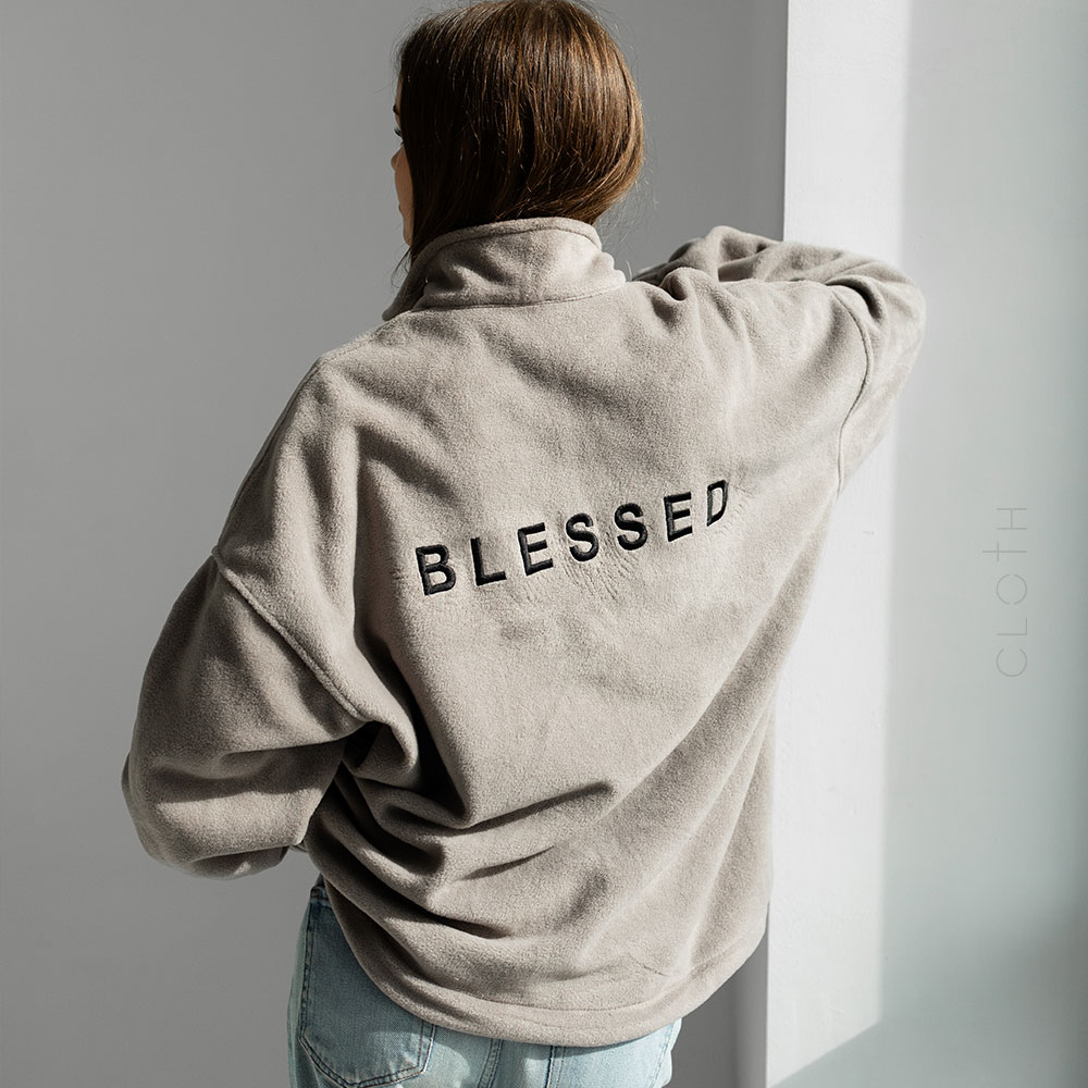 Зіп кофта на полар фліс з нашивкою Blessed.